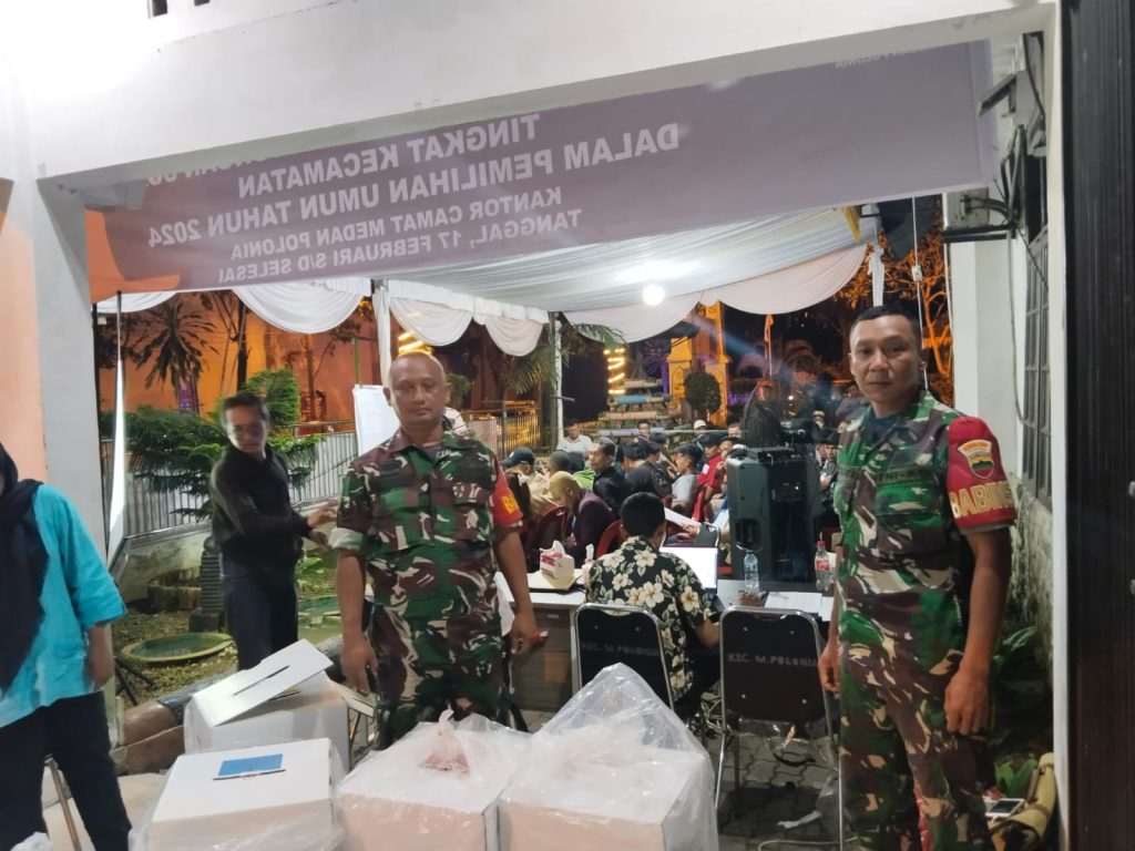 MEDAN 05/MB | Guna mengantisipasi munculnya masalah terhadap perhitungan suara di PPK, Babinsa Koramil 0201-05/MB bersama Polsek Medan Baru dan Medan Kota melaksanakan pengamanan rapat pleno rekapitulasi hasil penghitungan perolehan suara Pemilu 2024 tersebar di Kecamatan Medan Baru, Medan Polonia dan Medan Maimun.