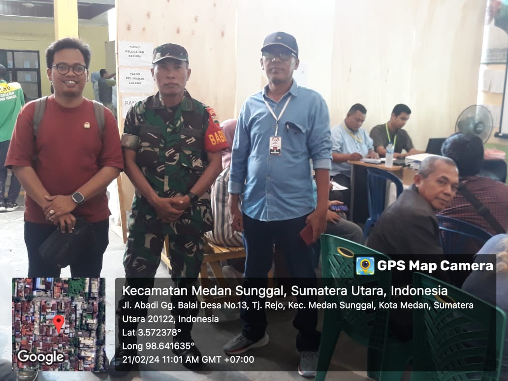 Medan. Babinsa Koramil 0201-06/MS,Kodim 0201/Medan Yanh terdiri dari Dua Kecamatan yaitu Kecamatan Medan Sunggal dan Kecamatan Helvetia, Babinsa terus melakukan Monitoring kegiatan Perhitungan Rekapitulasi Hasil suara pada Pemilu 2024,pada suara Pilpres, DPD-RI, DPR-RI, DPRD Provinsi dan Kota dimulai dari Pukul 10.00 Wib Sampai Dengan Selesai.Rabu (21/02/24)