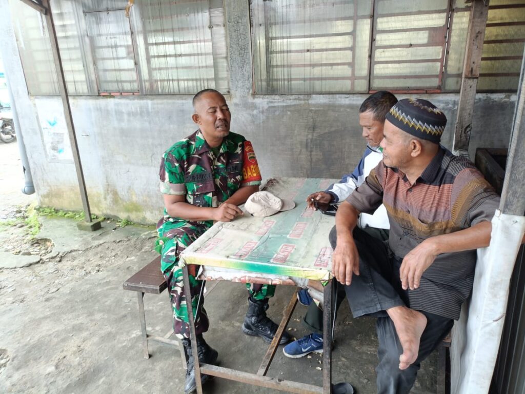 BABINSA KORAMIL 0201-06/MS SERTU SUPRIADI KOMSOS DENGAN WARGA BINAANNYA DI WARUNG BAPAK AMAD.