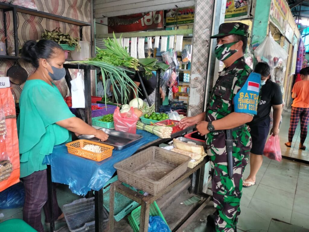 Babinsa Koramil 0201-06/MS Setiap Hari Himbau dan Terapkan Protokol Kesehatan Di Pajak Tradisional Sunggal