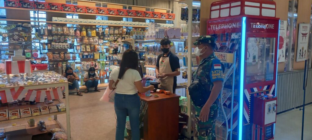 Medan Sunggal | Babinsa Koramil 0201-06/MS Peltu Hisar Sidabutar Terus Himbau Prokes Kepada Masyarakat Khususnya Pengunjung Mall Agar Selalu Terapkan Prokes Guna untuk Menekan dan pencegahan penyebaran Virus Covid-19 diwilayah Sunggal dimana Malam ini warga masyarakat banyak berkumpul/Berkunjung dalam rangka Berbelanja Untu Kebutuhan Pribadi.Mall RCW Jl.Ringroad Lk.VIII Kel.Sunggal,Kamis,22/09/22