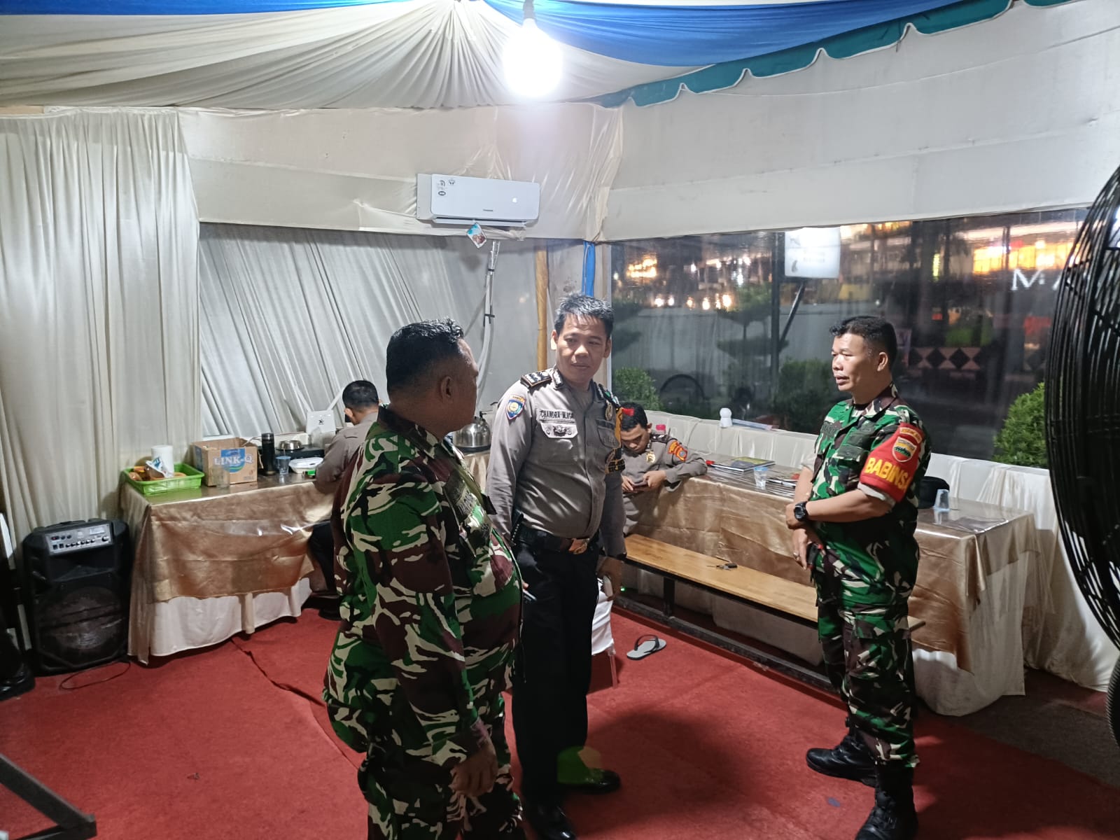 Para Babinsa melakukan Komunikasi,serta Berbincang bincang Dengan Polsek,Dinas Kesehatan,Satpol PP,Dishub dan Mitra Karib Senkom Polrestabes Medan,ketika melakukan Istirahat ditenda Pospam para Personil melakukan pemeriksaan kesehatan Terlebih dahulu dari Dinas kesehatan (Puskesmas).Ujar Babinsa.