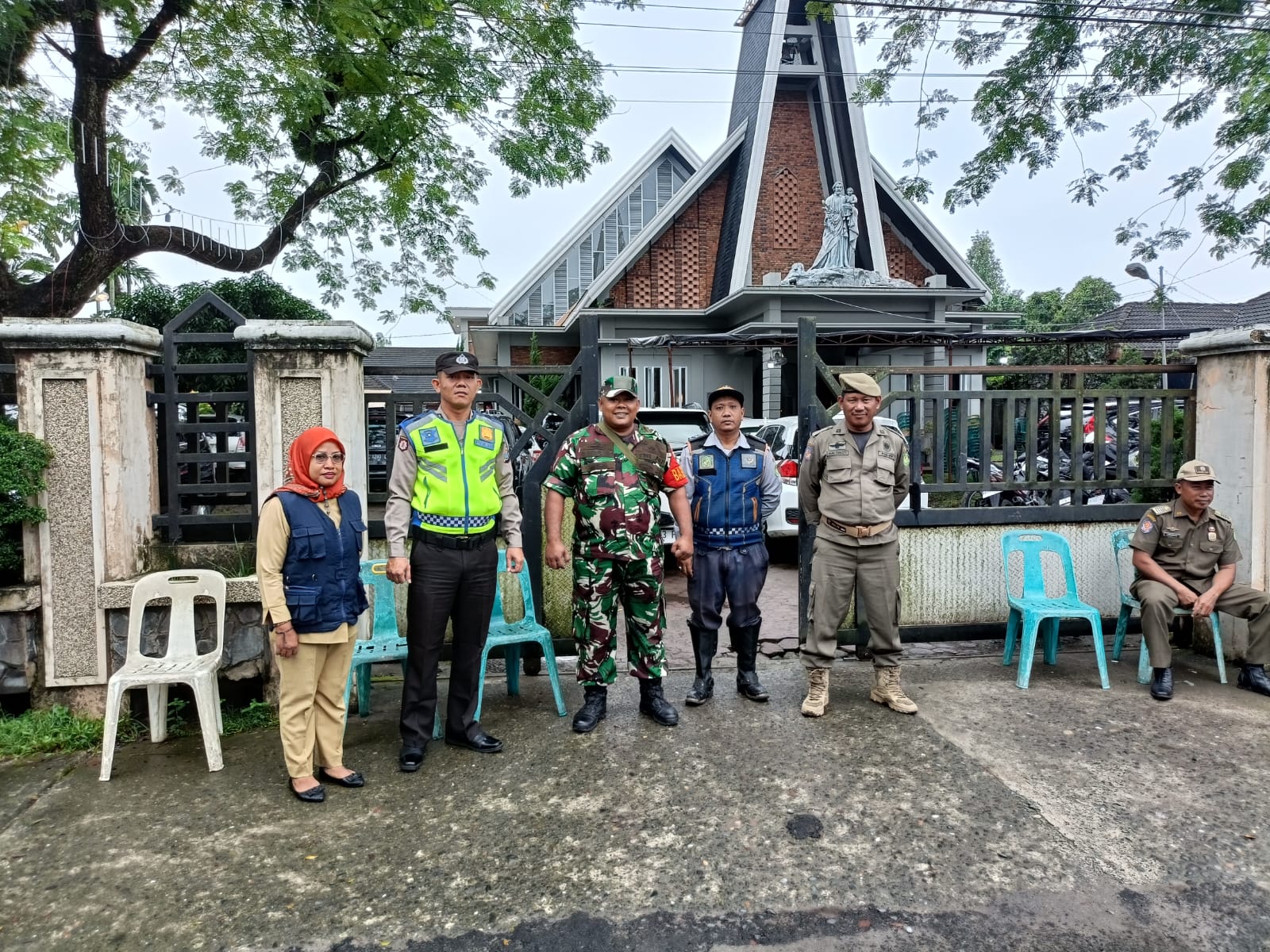 Medan, Babinsa Koramil 0201-06/MS Kodim 0201/Medan Pelda I.Simatupang bersama anggota Polsek Medan Sunggal ,Satpol PP,Dishub dan Kepala Lingkungan (Kepling) bersinergi mengamankan perayaan ibadah Natal. di Gereja Santo Yoseph Jalan DR Mansyur No 75 Kelurahan Padang Bulan Selayang 1 Kecamatan Medan Medan Selayang.Senin (25/12/23)