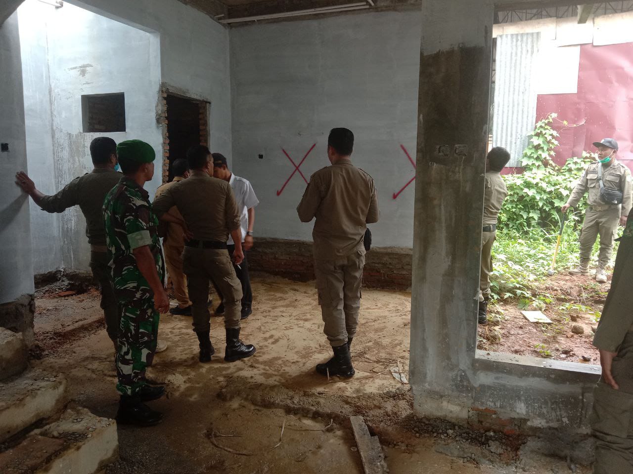 Pihak satpol PP mengerahkan anggota nya sebanyak sepuluh orang di bantu pihak kecamatan dan kelurahan sebanyak tujuh orang dan di dampingi babainsa koramil 0201 – 07/ MT, untuk menertib kan bangunan tersebut.
