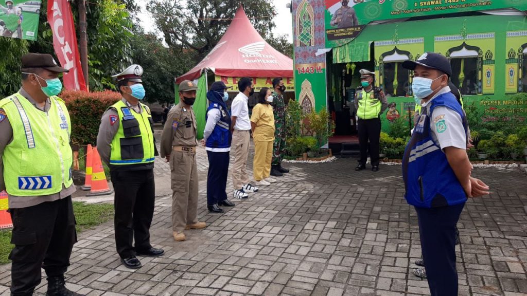 Babinsa Koramil 0201-07 / MT Serma P Sitepu dan Serka Sandi Batara bersama jajaran Pomdam,Polsek Medan Helvetia dan Satpol-PP, Dishub serta Tim Kesehatan dari Puskesmas yang tergabung dalam satu Tim POS PAM menjalankan tugas untuk memantau dan mengatur lalulintas di sekitar lampu merah simpang Manhatan dengan tujuan untuk memperlancar jalannya arus lalulintas dari kemacetan yang disebabkan melonjaknya para pemudik
