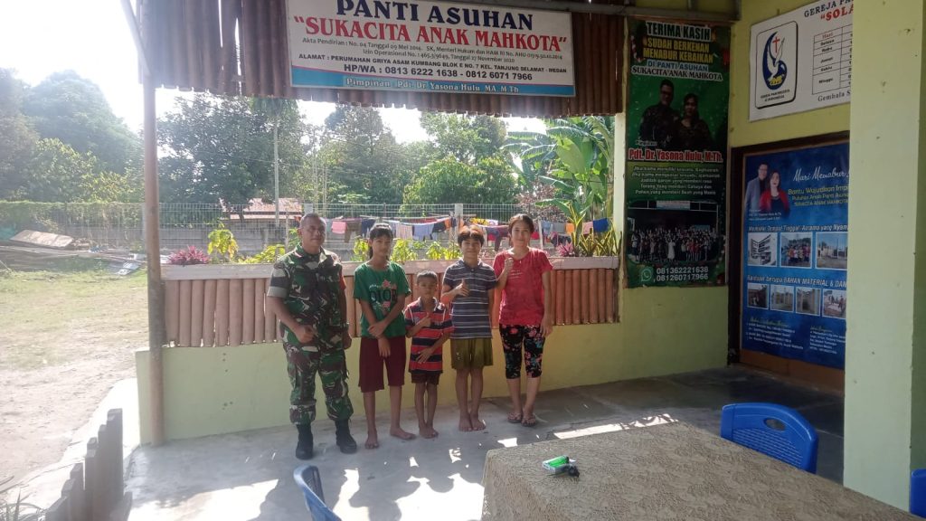 Kegiatan Babinsa Serma Suratno dan Serda JP Hasibuan melakukan silaturahmi menyambangi Panti Asuhan untuk mempererat hubungan baik yang sudah terbina selama ini sekaligus untuk mengetahui Perkembangan situasi dan kondisi panti Asuhan sukacita anak mahkota,disamping itu guna untuk pendataan kembali dan untuk mensingkoronkan Data secara Rill dilapangan sesuai Keterangan yang ada dipanti Asuhan pada Babinsa.