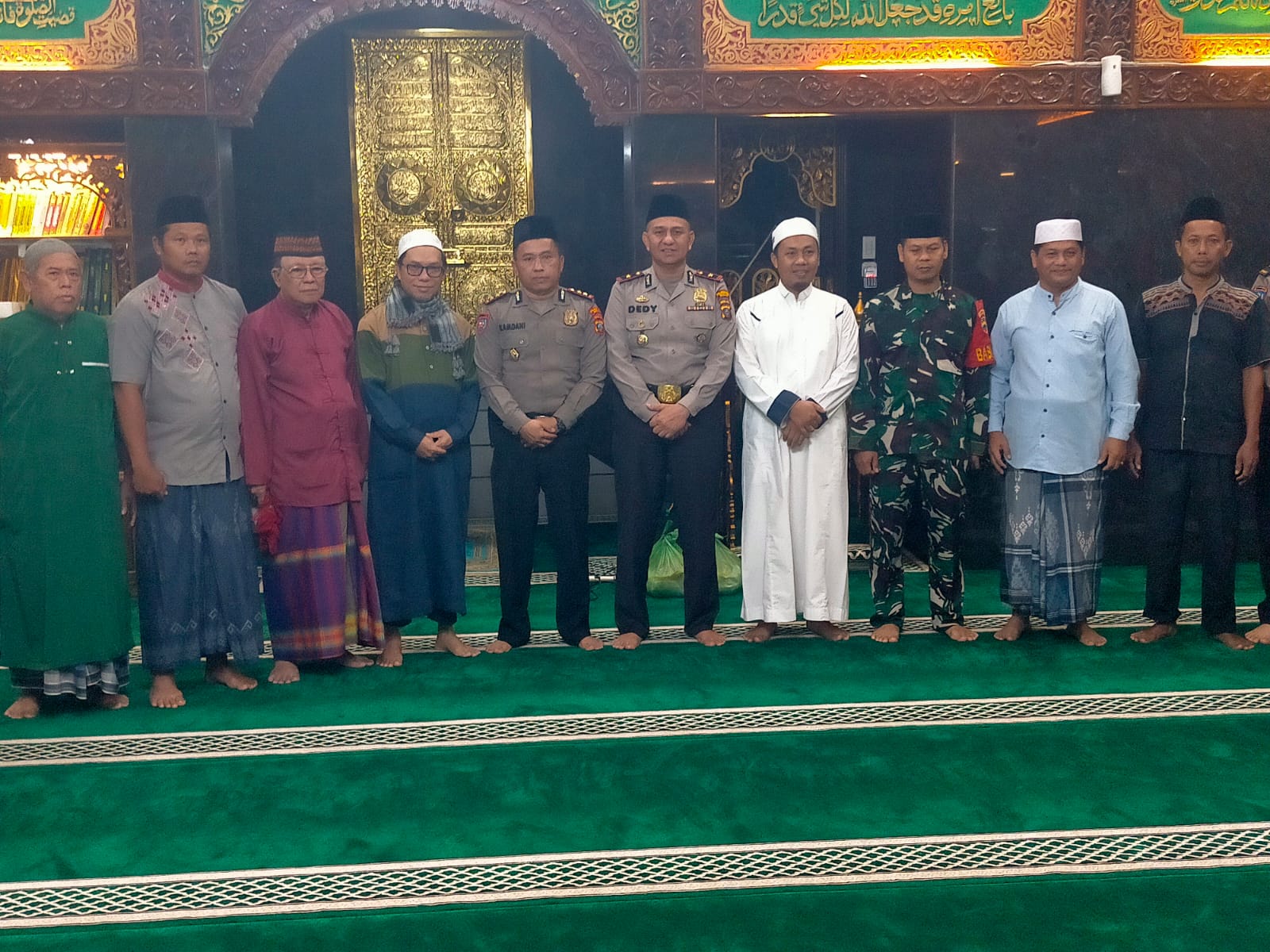 Medan : Babinsa Koramil 0201-08/MA Kodim 0201/Medan Serda Tirto bersama jajaran Polrestabes Medan menggelar Safari Subuh di Masjid Baitusolihin Jalan Karya Bakti, Kelurahan Pangkalan Mansyur, Kecamatan Medan Johor, Rabu 03 Januari 2024.