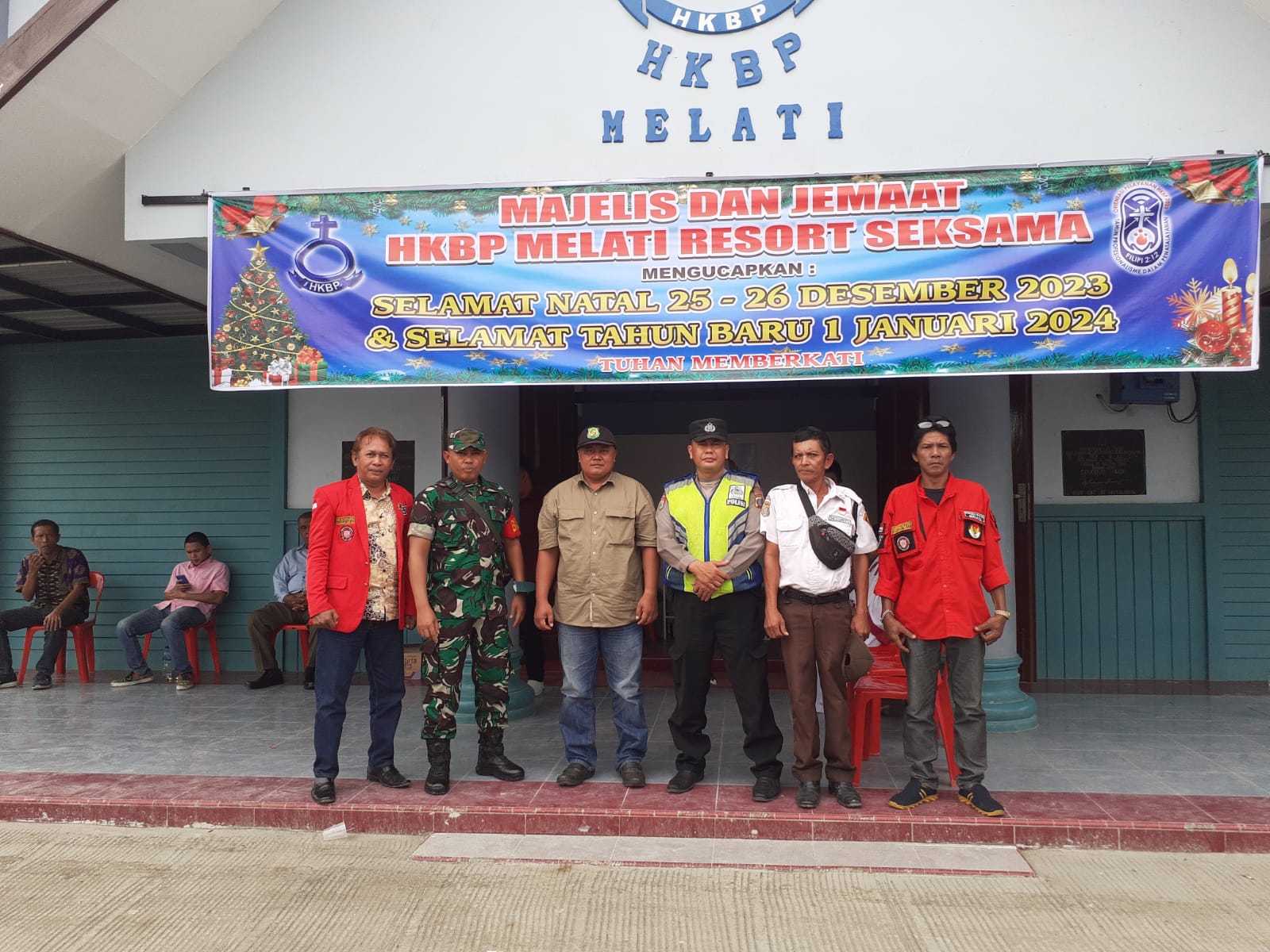 Babinsa Koramil 0201-08/MA Bersama Tiga Pilar Kelurahan Dan Elemen Masyarakat Pengamanan Ibadah Natal