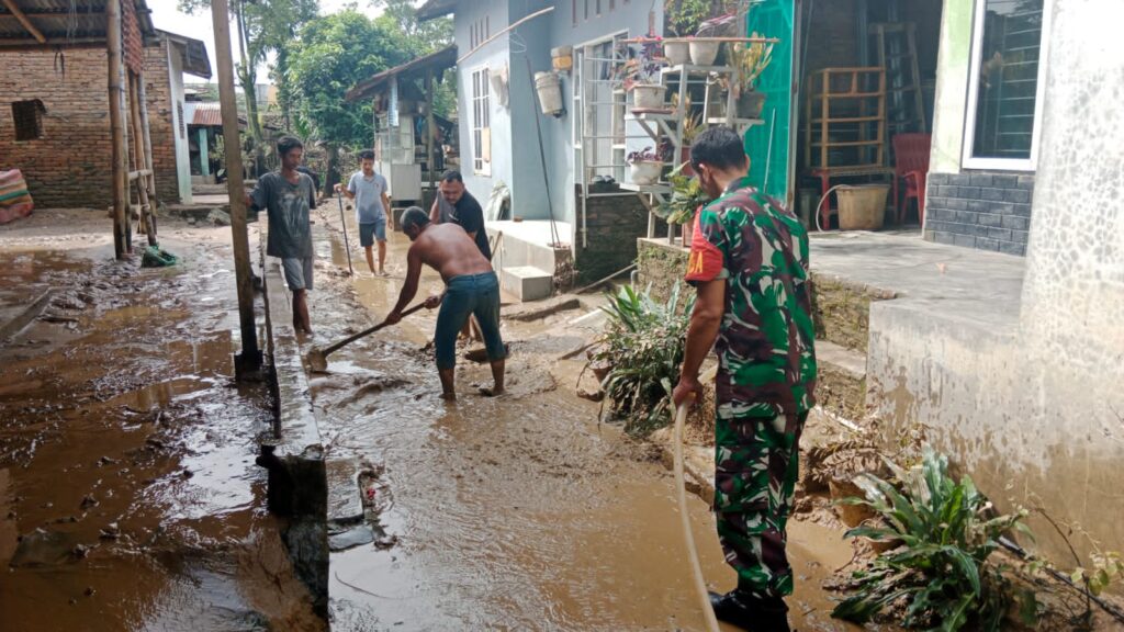 BABINSA KORAMIL 0201-08/MA GOTONG ROYONG BERSIHKAN JALAN DAN RUMAH WARGA PASCA BANJIR