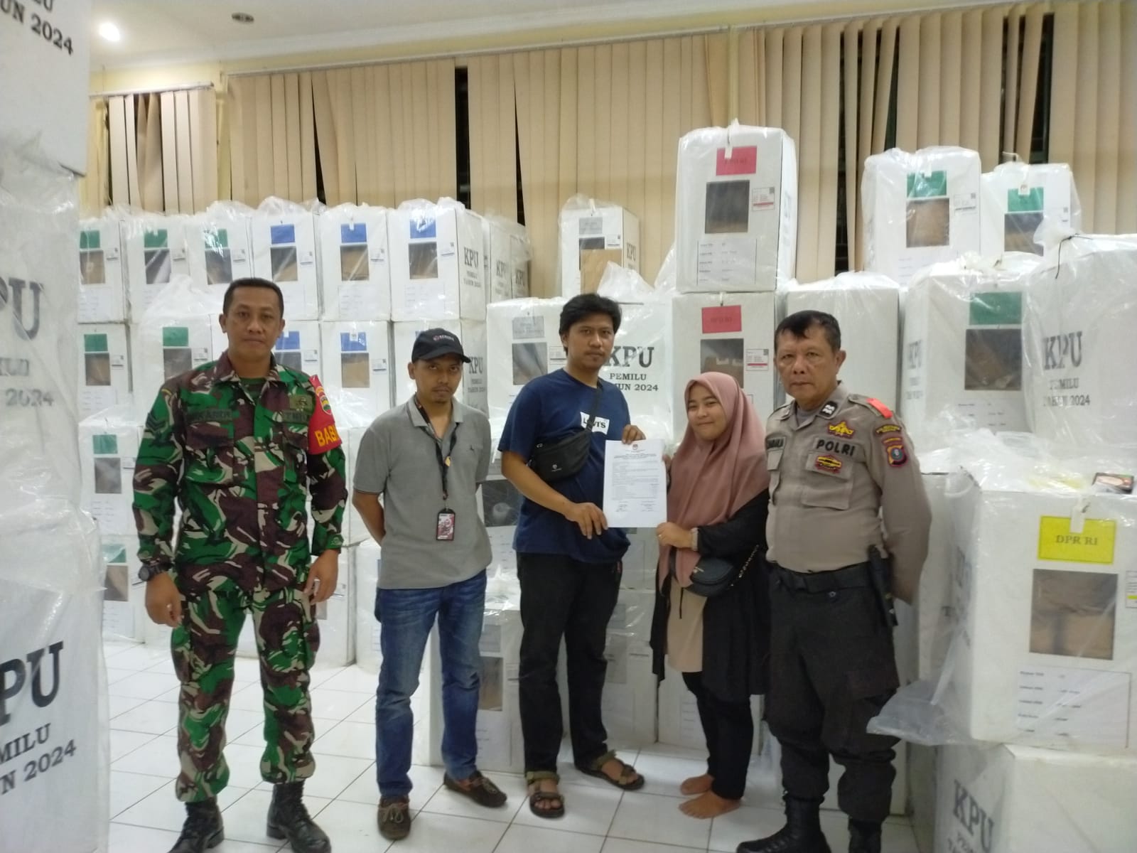 Dalam rangka mengawal pemilihan umum agar aman dan lancar, aparat TNI-POLRI bersinergi memberikan pengamanan terhadap dalam perjalanan maupun gudang tempat penyimpanan kotak suara pemilu 2024.