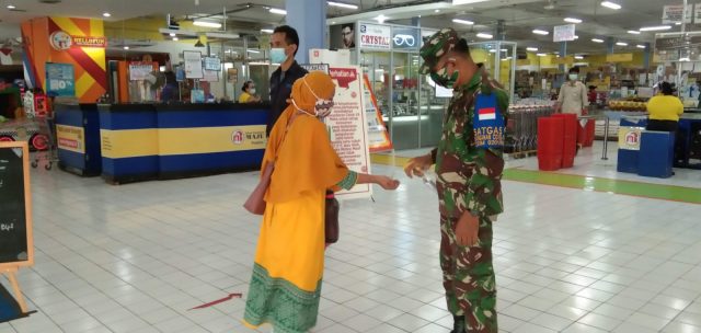 Babinsa Koramil 0201-08/MA Ingatkan Pengunjung Swalayan Selalu Patuhi Protokol Kesehatan