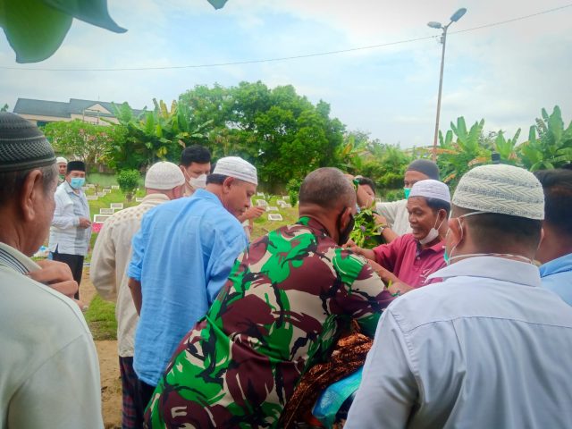 Pada saat melaksanakan Takziah Babinsa Koramil 0201-08/MA Serma Rudi Hartono meghimbau kepada para takziah agar selalu disiplin dalam menerapkan protokol kesehatan karena pandemi covid -19 belum berakhir.