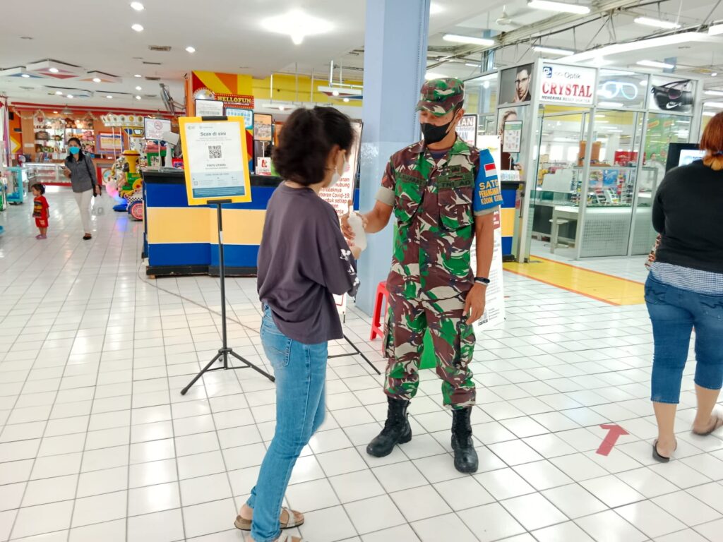 Kopda L.Sijabat mengatakan, kegiatan aturan penerapan pendisiplinan protokol kesehatan kepada masyarakat yang beraktifitas di swalayan maju bersama agar selalu memakai masker, mencuci tangan dan menjaga jarak.