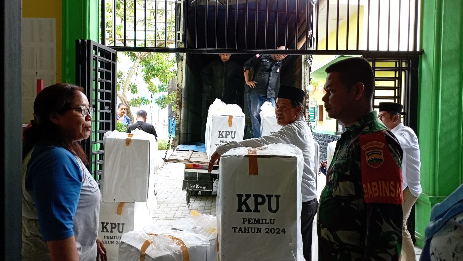 Pastikan tahapan Pemilu 2024 berjalan aman dan lancar, Babinsa Koramil 0201-08/MA jajaran Kodim 0201/Medan Serda Tirto Bersama Bhabinkamtibmas dan Lurah beserta Jajarannya Monitoring Kedatangan Logistik Pemilu 2024.