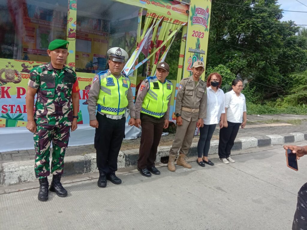 Medan : Libur Natal Tahun 2023 dan Tahun Baru 2024 (Nataru), Babinsa Koramil 0201-08/MA Kodim 0201/Medan Serka S.Siregar ikut melaksanakan Pengamanan di Pos PAM Lilin Toba Indogrosir Jalan SM.Raja, Kelurahan Harjosari II, Kecamatan Medan Amplas, Rabu 27 Desember 2023.