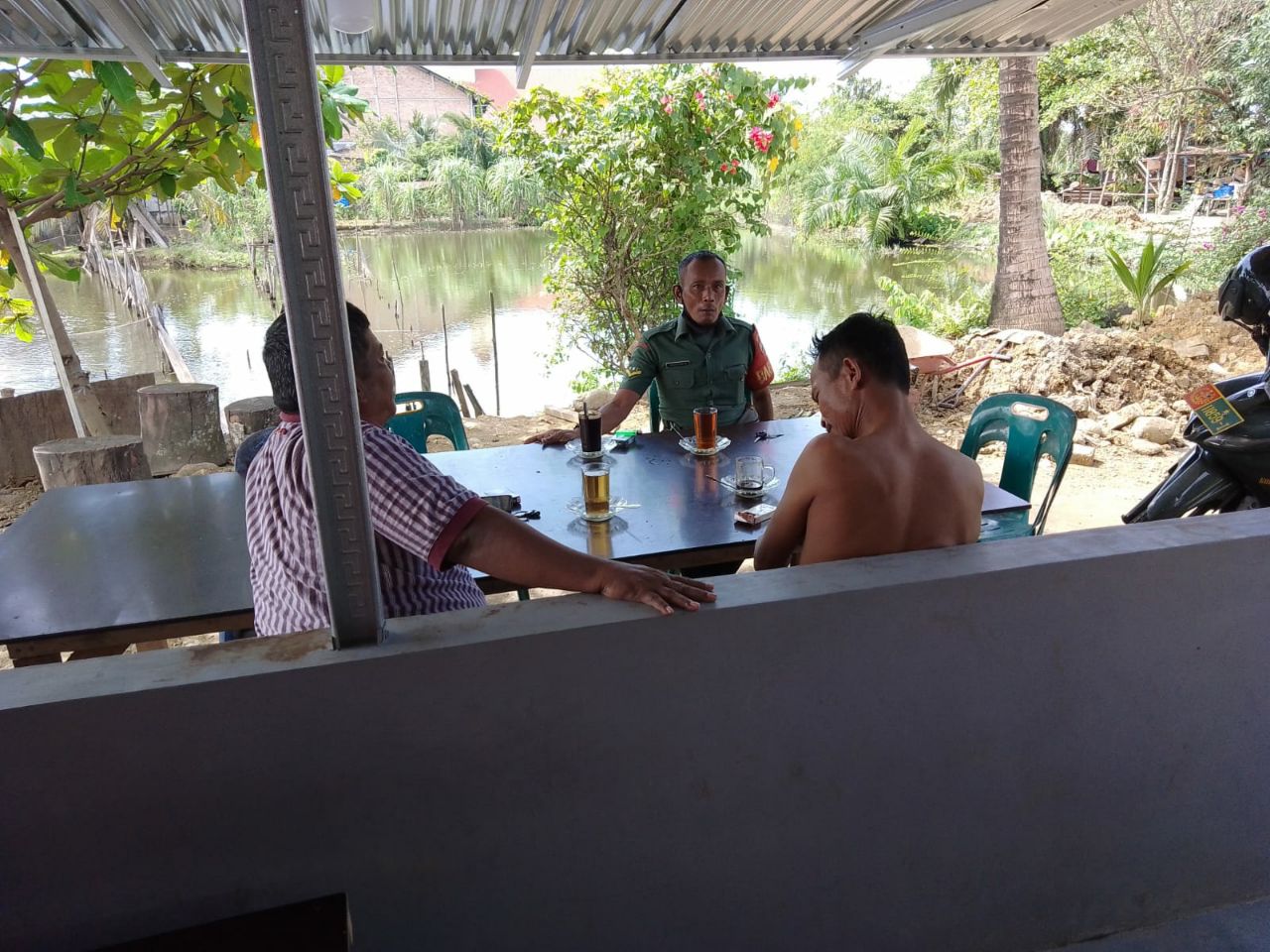 Medan : Babinsa Koramil 0201-08/MA Kodim 0201/Medan Sertu Khairudin melaksanakan Komunikasi Sosial (Komsos) dengan warga di salah satu warung kopi di Jalan Balai Desa, Kelurahan Timbang Deli, Kecamatan Medan Amplas, Selasa 21 November 2023.