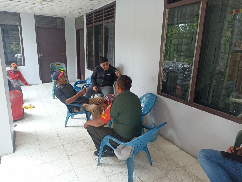 Medan : Babinsa Kelurahan Sitirejo II Sertu Rudi Hermanto Anggota dari Koramil 0201-08/MA jajaran Kodim 0201/Medan melaksanakan kegiatan komunikasi sosial (komsos) dalam rangka pembinaan Teritorial (Binter) dengan Kepling dan warga binaannya, bertempat di teras rumah warga di Jalan STM, Kelurahan Sitirejo II, Kecamatan Medan Amplas, Kamis 07 Des 2023.