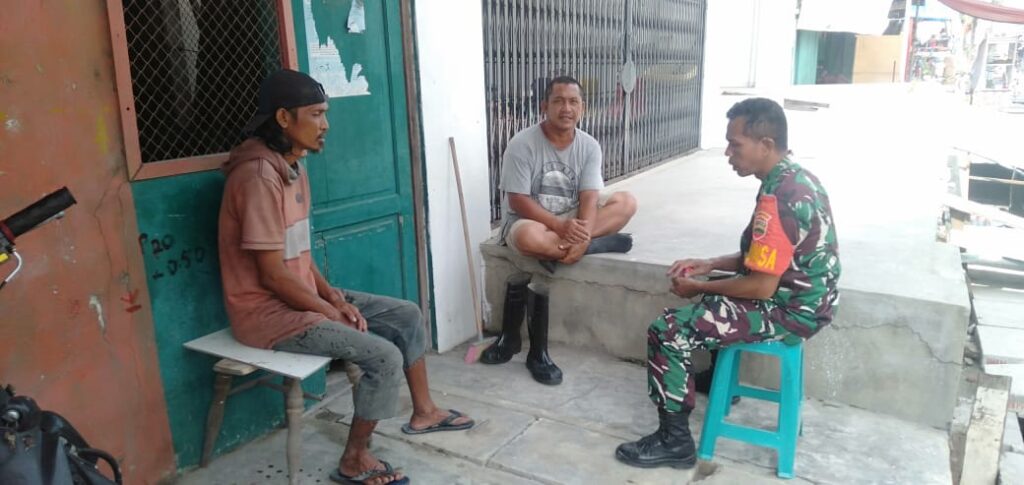 Belawan ~ Babinsa Koramil 0201-09/MB Kodim 0201/Medan Serma Kasdi melaksanakan Komunikasi Sosial(Komsos) dan silaturahmi bersama warga binaan untuk tingkatkan keakraban dan kekompakan yang penuh kekeluargaan berempat di Jalan Veteran Keluaran Belawan I Kecamatan Medan Belawan,Selasa(03/10/23).