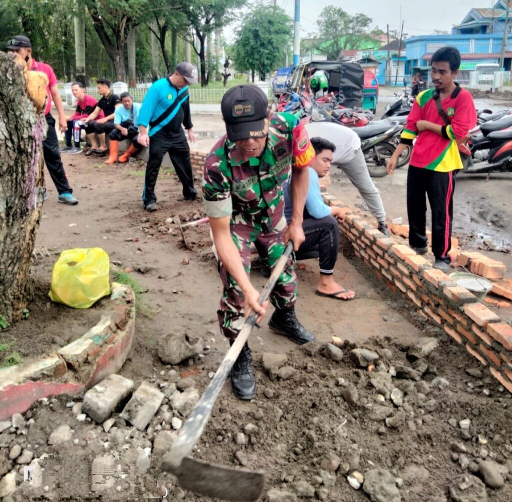 Babinsa Koramil 0201-09/MB Laksanakan Gotong-royong Pembuatan Taman Kota