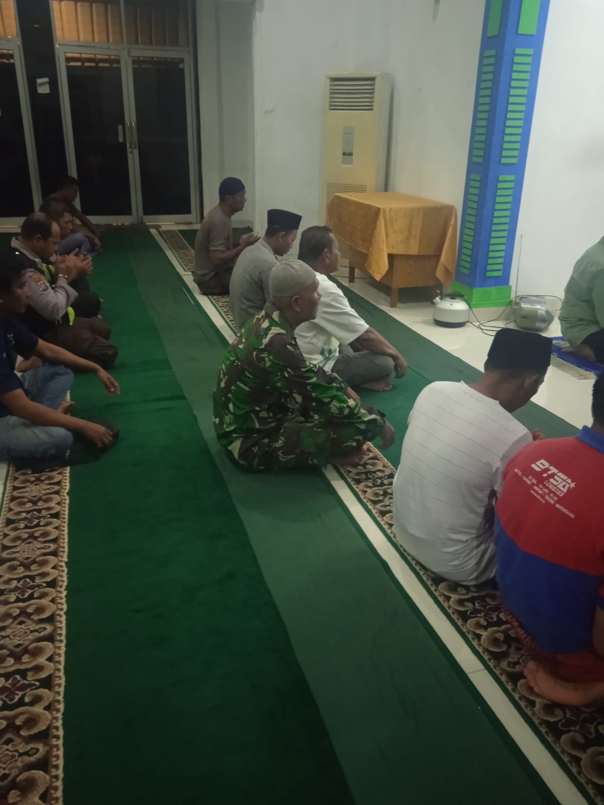 Belawan ~ Babinsa Koramil 0201-09/MB Kodim 0201-09/MB Pelda Ali Makhfoudz melaksanakan sholat subuh secara berjama’ah bersama warga,yang dilakukan di Masjid Baitut Tasyakur Kelurahan Belawan I Kecamatan Medan Belawan,Minggu(24/3/24).