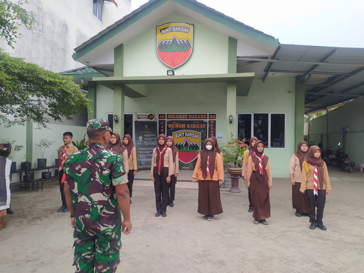 Pada kesempatan tersebut Sertu Trisno Abadi yang membina dan melatih Saka Wira Kartika di Makoramil ini, memberikan materi PBB (Peraturan Baris Berbaris).
