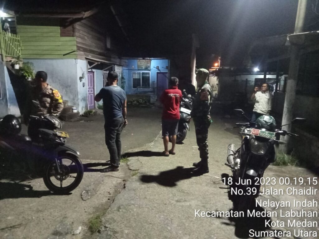 Serka Subagyo Babinsa Kelurahan Nelayan indah mengatakan ,”bersama 3 pilar dan kepling melakukan posko dan patroli wilayah yang rawan terjadi tawuran guna mencegah aksi tawuran yang akhir-akhir ini sering terjadi dan kejahatan lainnya di wilayah Kota medan”.