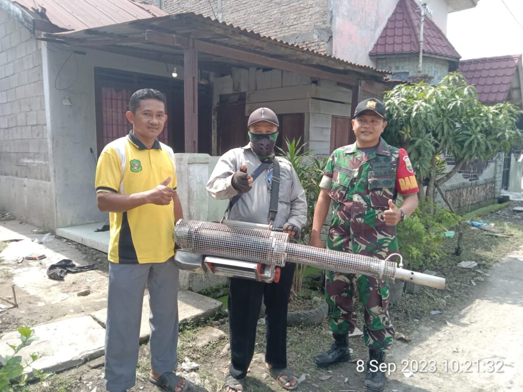 Penyemprotan fogging ini sendiri dilakukan guna mengantisipasi terhadap kasus gejala penyakit DBD yang disebabkan oleh nyamuk Aedes Aegypti Sehingga penyemprotan atau fogging ini perlu dilakukan,” pungkas Serda Ardani Ependi