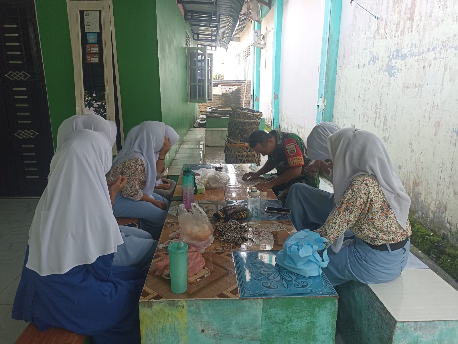 Babinsa Koramil 0201-10/MM Kodim 0201/Medan Sertu Adi Erlan Komsos dengan Siswi SMK Brigjen Katamso