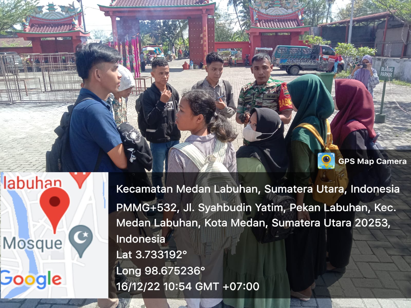 Medan Marelan – Babinsa Koramil 020-10/Medan Marelan Kodim 0201/Medan Sertu Harsoyo laksanakan Komsos bersama mahasiswa POTENSI UTAMA (PU) Brayan dalam rangka pembuatan tugas kuliah di VIHARA Siu San Keng, Jl. KL Yos Sudarso, Lingk 09, Kel. Pekan Labuhan. Jum’at (16/12/2022)