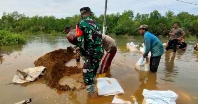 ” Air pasang merendam Kel. Nelayan Indah sekira pukul 15.30 wib, ketinggian air bervariasi mulai 15 cm sampai dengan 70 cm sehingga jalan tidak bisa dilalui kendaraan roda dua”,jelas Serka Subagyo usai melakukan pantuaun di lokasi.