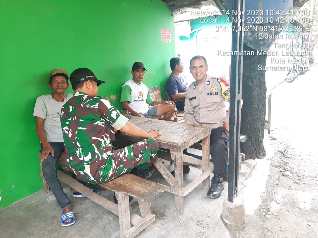 MEDAN – Tingkatkan Silaturahmi Babinsa Koramil 0201-10/MM Kodim 0201/Medan Serda Ardani Ependi laksanakan kegiatan komunikasi sosial dengan Babinkamtibmas dan Kepling bertempat di jalan rawe 5 lingkungan 7 kelurahan tangkahan kecamatan Medan labuhan, Selasa (14/11/2023).