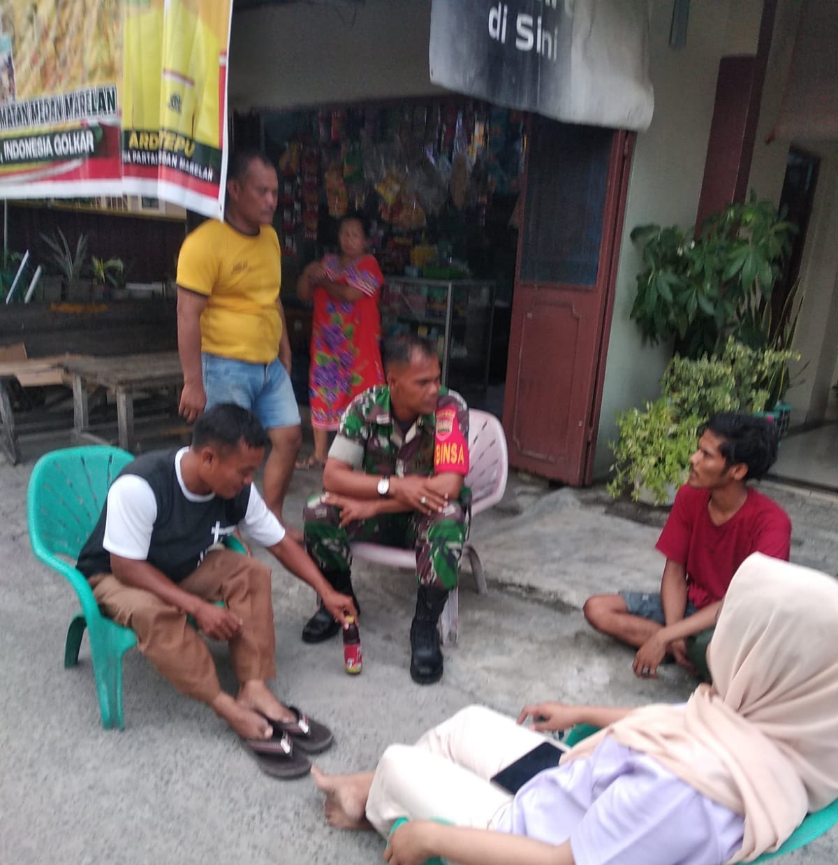 MEDAN – Babinsa Koramil 0201-10/MM Serda Suhenda melaksanakan kegiatan Komsos bersama perangkat Kepling dan Warga bertempat di lingkungan 4 kelurahan paya pasir kecamatan Medan Marelan, (26/06/2023).