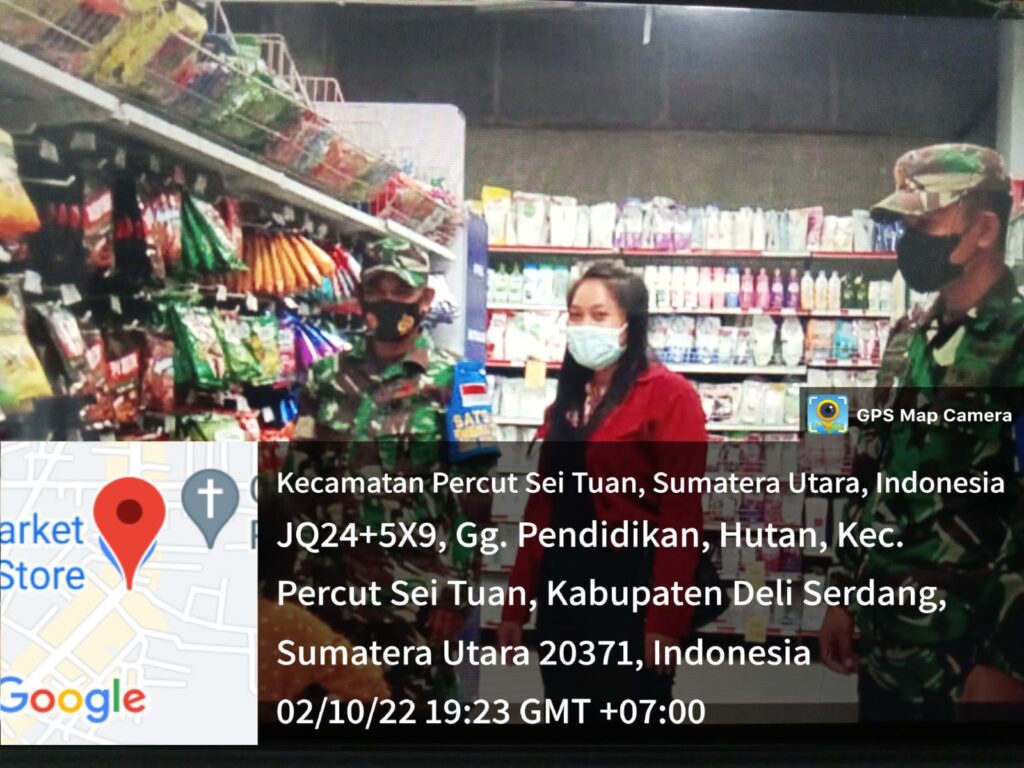 Percut Sei Tuan. Babinsa Koramil 0201-13/PST Serma Sofyan Nasution dan Serda Asi Monang Nainggolan menghimbau pengunjung dan Karyawan agar selalu mematuhi Prokes bertempat di Swalayan Irian Jln Besar Medan Batang Kuis Desa Bandar Klippa Kecamatan Percut Sei Tuan. Minggu 02/19/2022
