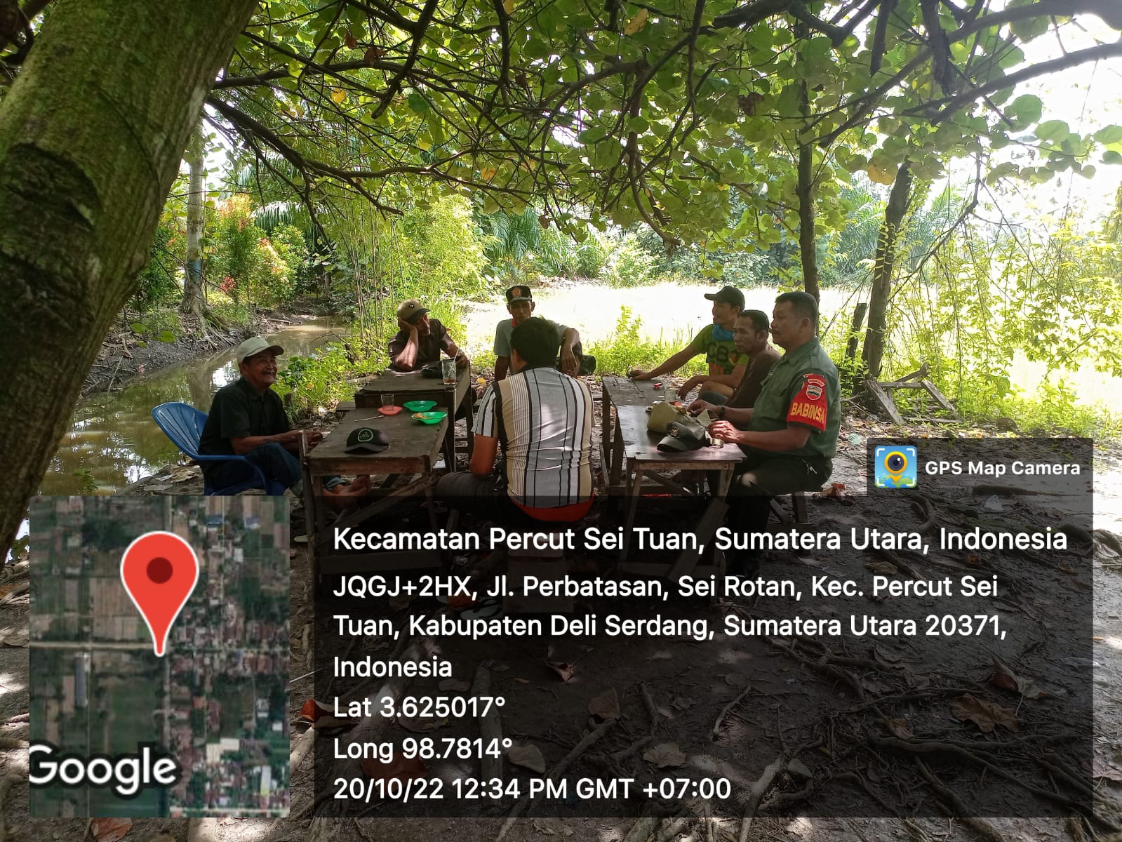 Percut Sei Tuan. Babinsa Koramil 0201-13/PST wilayah binaan Desa Kolam Serda Sukamto pada hari Kamis 20 Oktober 2022 bersama Tokoh masyarakat dan warga bertempat di Dusun I Desa Kolam Kecamatan Percut Sei Tuan