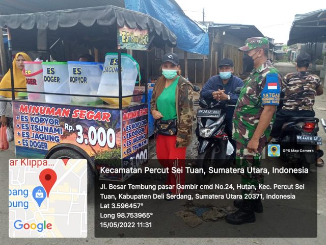 Seperti yang dilaksanakan dua orang Babinsa Koramil 0201-13/PST Serma Heriyandi Siko dan Serda Marsudi kembali menghimbau pengunjung dan Pedagang agar selalu mematuhi Prokes bertempat di Pajak Gambir Jln Pasar VIII Desa Bandar Klippa Kecamatan Percut Sei Tuan