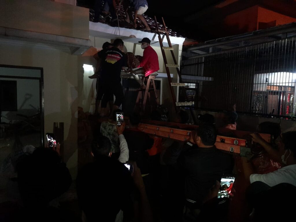 Setiba nya di lokasi kejadian, Bapak Charles Sigalingging selaku pemilik rumah langsung menghubungi Kepala Desa Durin Tonggal. Lalu Bapak Jakup Sembiring selaku Kepala Desa Durin Tonggal selanjut nya menghubungi Babinsa Koramil 0201-14/PB Sertu JA Saragih dan juga Pihak Polsekta Pancur Batu beserta PLN Pancur Batu, untuk segera merapat ke Perumahan Golden Land yang berada di wilayah Dusun 5 Desa Durin Tonggal Kec Pancur Batu. Sekitar pukul 21.00 wib malam tadi, Personil dari PLN Pancur Batu di bantu Babinsa Koramil 0201-14/PB dan Pihak Keluarga berhasil menurunkan korban dari atap rumah Bapak Charles Sigalingging.