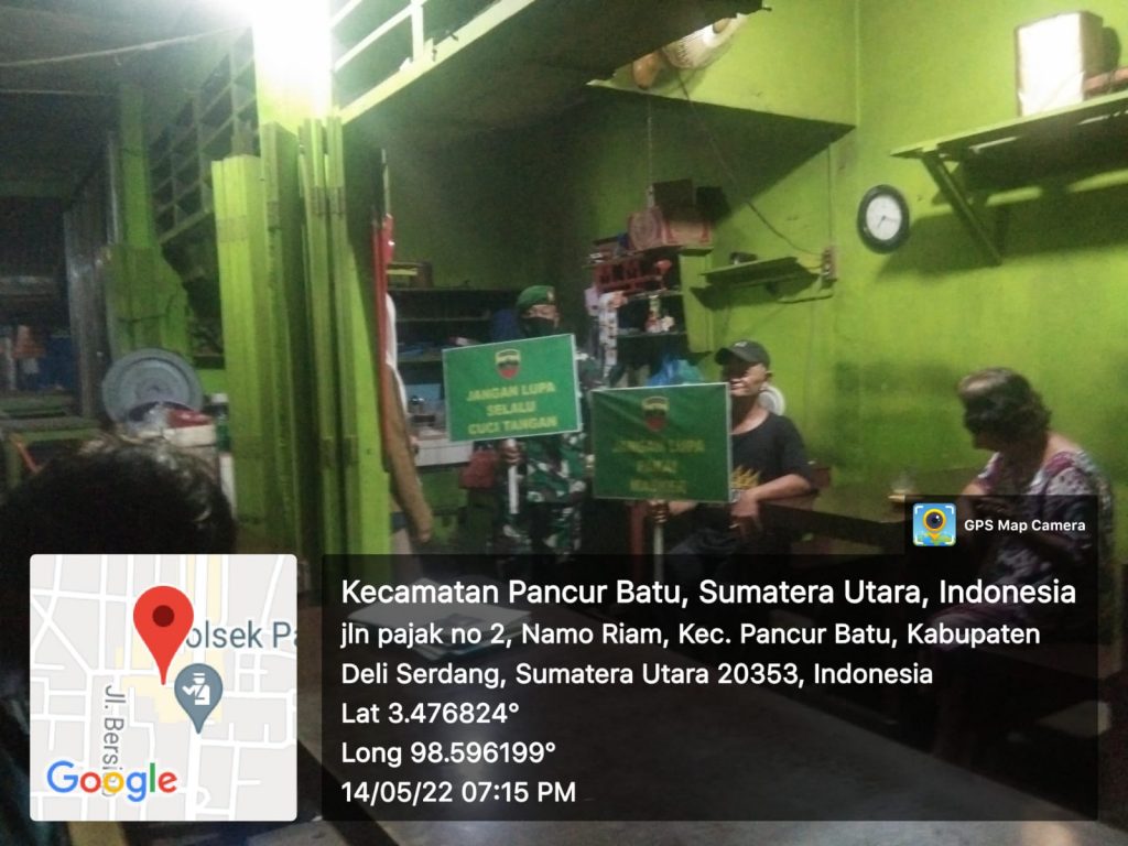 Terlihat seperti yang di laksanakan oleh 2 orang Babinsa Koramil 0201-14/PB pada malam hari ini (14-05-2022) sekitar pukul 19.30 wib. Mereka tampak melaksanakan Operasi Yustisi dan Penerapan Protokol Kesehatan di wilayah Kec Pancur Batu untuk mencegah dan memutus mata rantai penyebaran virus Covid 19 dengan Sasaran Warung Kuliner dan Warung Kopi yang berada di sepanjang jalan Jamin Ginting Kec Pancur Batu. Hal ini di sebabkan pada tempat tempat tersebut terlihat selalu ramai di kunjungi masyarakat pada malam hari. Sehingga di khawatir kan dapat memicu terjadi nya penyebaran virus Covid 19 apabila tidak di lakukan Pendisiplinan Protokol Kesehatan secara terus menerus.