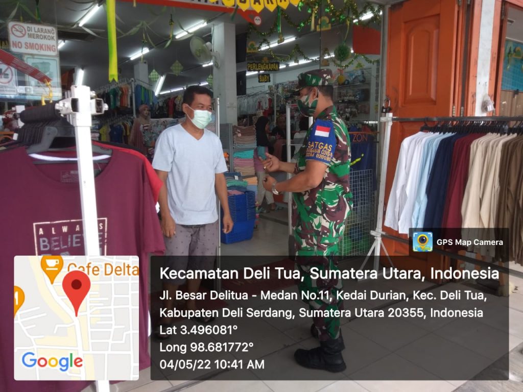 Babinsa kodim 0201-15/DT melaksanakan himbaun protokol kesehatan di wilayah guna menekan penyebaran covid 19 ini di laksnakan oleh babinsa dengan rasa penuh tanggung jawab agar di wilayah koramil 15 penyebaran covid tidak melonjak kegiatan ini di laporkansetiap hari kepada komando atas hasil kegiatan Babinsa dlm rgk PPKM Mikro dan Update Data Tracing di wil Koramil 0201-15/DT , pada hari rabu , 4 mei 2022 sbb :