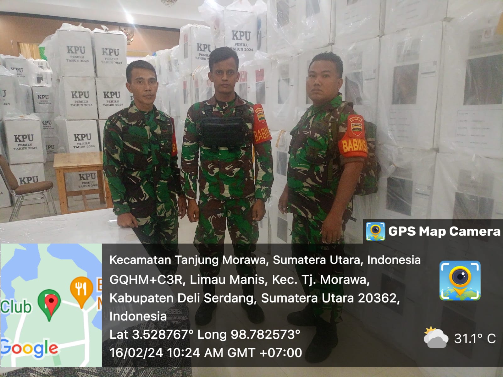 Babinsa Koramil 0201-16/Tanjung Morawa Melaksanakan Pengamanan Kotak Suara Pemilu Tahun 2024 Di Gudang KPU Wisma Puri PTPN2 Tanjung Morawa