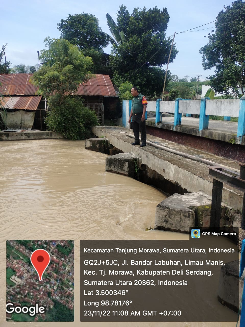 Tanjung Morawa -Babinsa Koramil 0201-16/TM Kodim 0201/Medan,Serma Sukamto melaksanakan pengecekan bendungan aliran irigasi yg mengakibatkan sebagian rumah warga tergenang air di Perum Rorinata Residence dsn 6 desa B.labuhan Kec Tj Morawa Kab Deli Serdang,Rabu 23 November 2022.