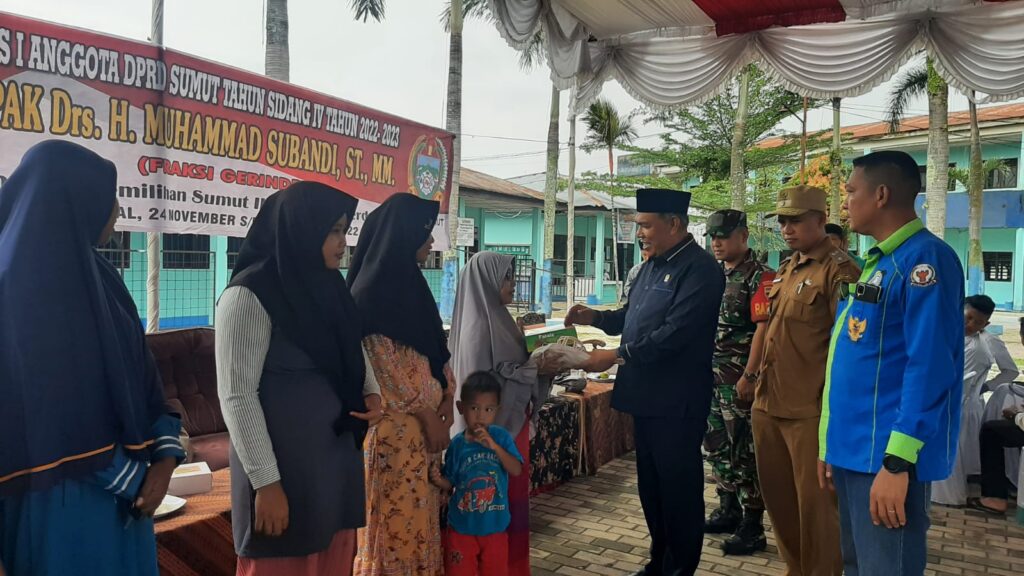 Dalam kegiatan tersebut kepedulian Bpk Drs H Muhammad Subandi DPRD Sumut memberikan bingkisan kepada masyarakat berupa sembako.