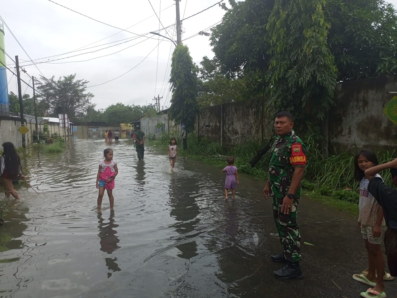 Babinsa Koramil 0201-16/TM Monitoring Banjir Luapan Sungai Tanjung Morawa