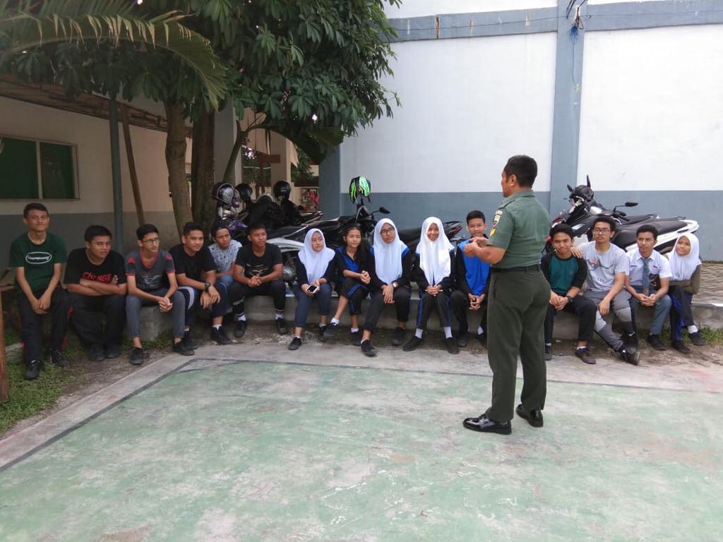 Babinsa Koramil 05/MB Kodim 0201/BS Serma Surianto memberikan Konseling terhadap siswa siswi SMA Negeri 2 yang berlokasi di Kelurahan Sukadami Kecamatan Medan Polonia. Rabu (13/11/2019).