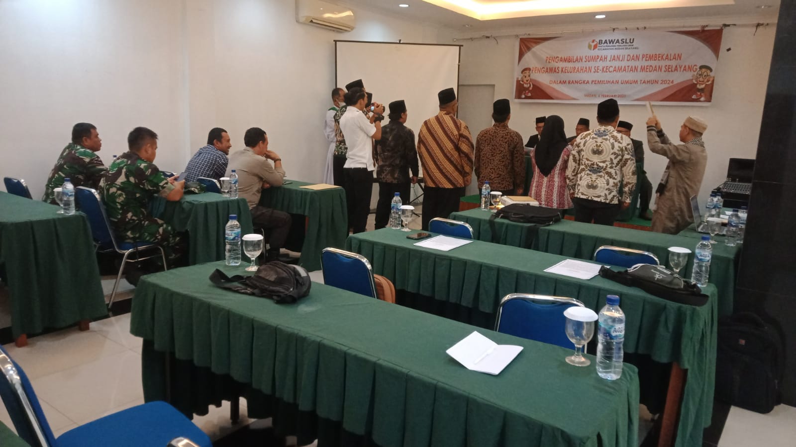 Babinsa Koramil 07/MT Srd Masril dan Srd JA Purba menghadiri pelantikan dan bimbingan tehnis (Bimtek) Panwaslu Sekecataman Medan Selayang, bertempat di Aula Hotel Kailani jl. Kenanga raya pasar 6 Tj sari kec Medan Selayang yang Pimpin langsung oleh Ketua Panwaslu Kecamatan Medan selayang Bpk Menak Simanungkalit.
