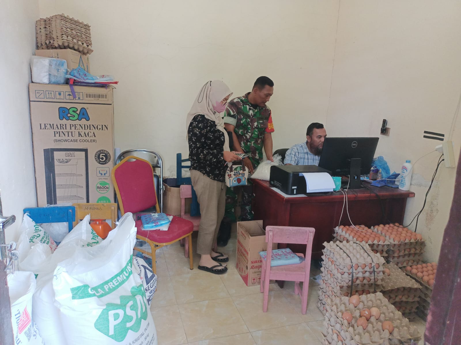 Babinsa hadir dan ikut andil dalam mempersiapkan barang-barang sembako yang akan dijual ini karena kehadiran Babinsa harus aktif di setiap kegiatan yang ada di wilayah binaannya, apalagi itu menyangkut tentang kegiatan kemasyarakatan.