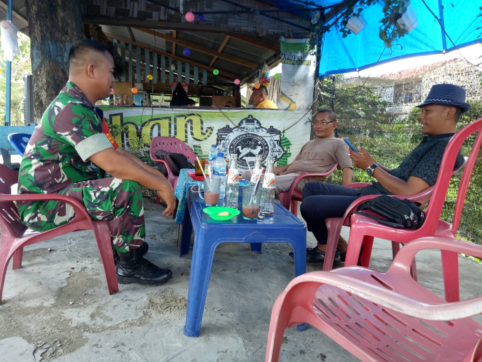 Babinsa Kel Kota Bangun Koramil 0201-11/MD Serka Supandi melaksanakan kegiatan komsos dengan masyarakat pemilik warung Nasi di Jl Perunggu Lk V Kel Kota Bangun Medan Deli dalam menjalin hubungan antara Babinsa dengan masyarakat di dalam segala hal, baik tentang kebersihan maupun kondisi Kamtibmas di lingkungan .