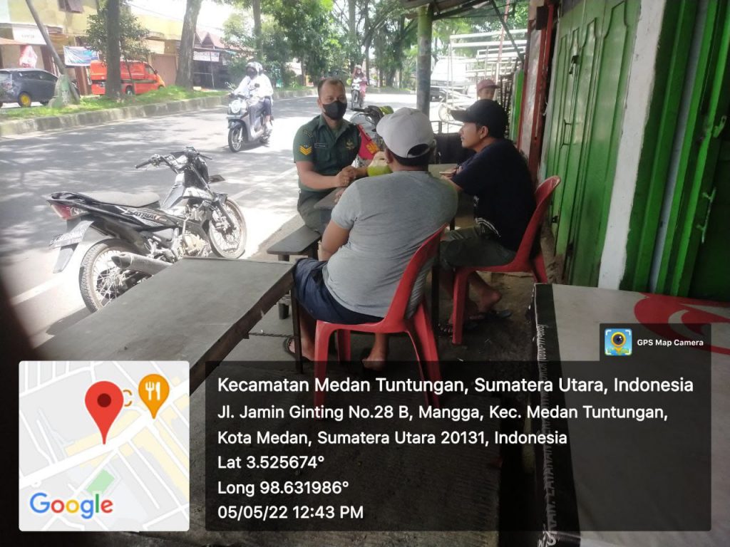 Babinsa Koramil 0201-07/Medan Tuntungan Serka DP Pasaribu melaksanakan Komsos dengan warga binaan (pak malem sitepu)di jl.Jamin ginting medan tuntungan. Kamis (05/05/2022).