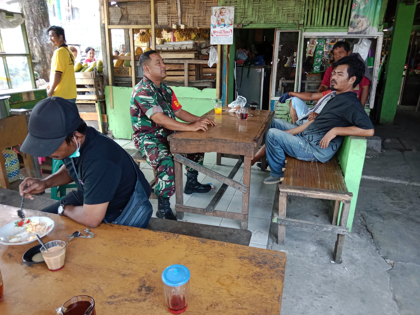 “Babinsa mengatakan Inilah fungsi kita berkomunikasi sosial kepada masyarakat jika ada sejumlah permasalahan Terutama keamanan dan kebersihan lingkungan sekitar binaan kita bisa diselesaikan bersama,”ujar Babinsa