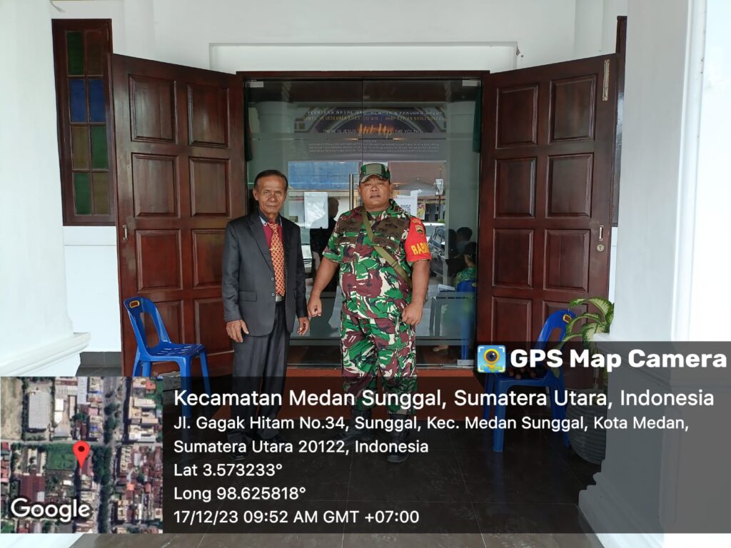 Medan.Babinsa Pelda I.Simatupang Sebagai Babinsa Kelurahan Sunggal,Koramil 0201-06/MS,Kodim 0201/Medan memonitoring kegiatan Ibadah Bagi Agama Nasrani di Gereja HKBP Jalan Ringroad Link 9 dan Gereja Cerah Masa Depan jalan Tapian Nauli Psr 3 Link 9 Kel.Sunggal Kec.Medamn Sunggal.Minggu(27/12/23)