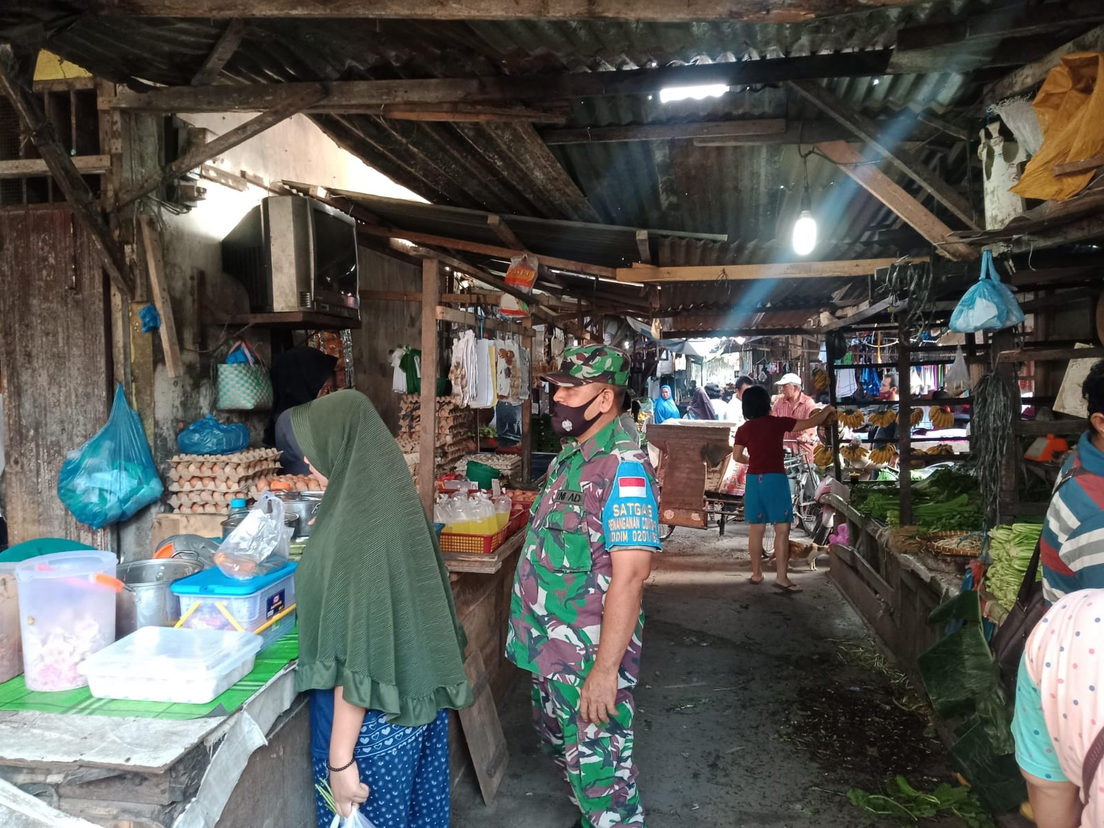 Babinsa menghimbau agar masarakat tetap memakai masker